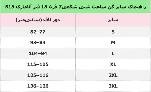 | راهنمای سایز گن ساعت شنی شکمی7 قزن 15 فنر آناماری S15 | |