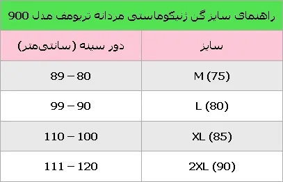 جدول راهنمای سایز گن طبی ژنیکوماستی تریومف 900